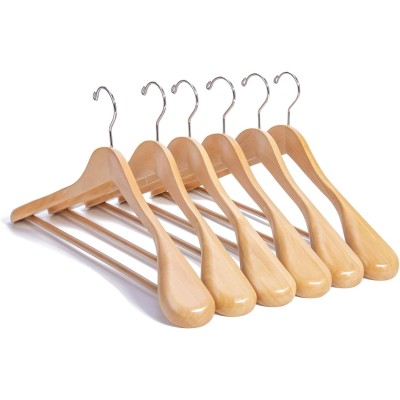 Luxury Natural Wooden Suit Hangers - 6 Pack - Wood Coat Hangers