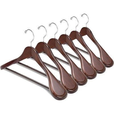 6 Pack Walnut Wide Shoulder Wooden Suit Coat Hangers with Non Slip Pants Bar