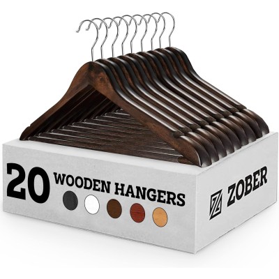 Wooden Hangers 20 Pack - Non Slip Wood Clothes Hanger