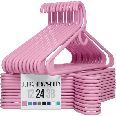Ultra Heavy Duty Plastic Clothes Hangers - Pink - Durable Coat