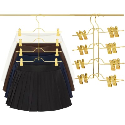 Skirt Hangers for Skirts and Pants with Adjustable Clips- 3-Pack Tops Gold