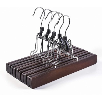 Walnut Wooden Pants Hangers 10 Pack, Wood Clamp Hangers