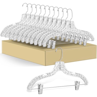 Quality Hangers 12 Pack Clear Plastic Skirt Hangers - Crystal Cut Pants Hangers