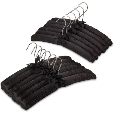 Padded Clothing Fabric Hangers for Women Clothing - Black, Set of 12