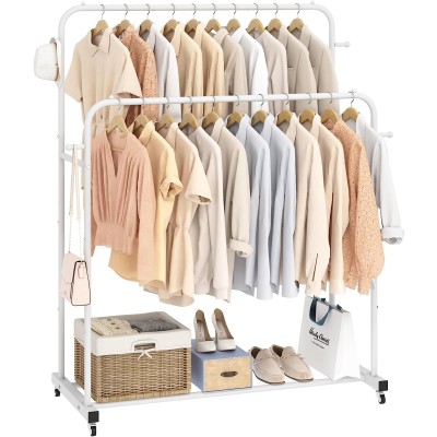 Double Rods Garment Rack with Wheels, Clothing Rack